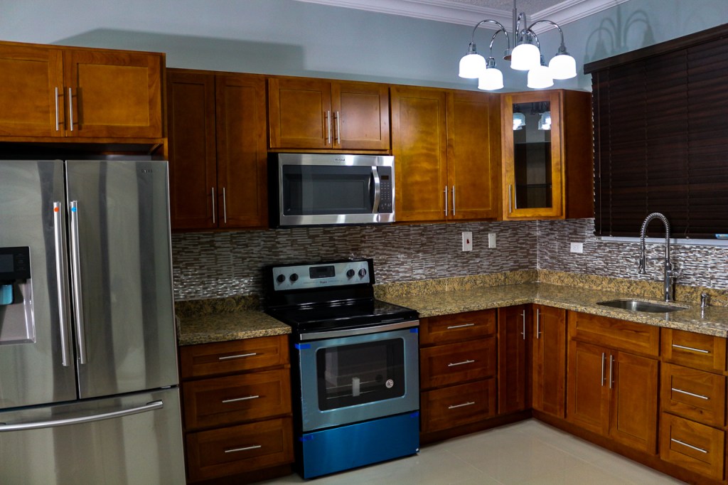 - Solid wood cabinets with shaker doors and drawers